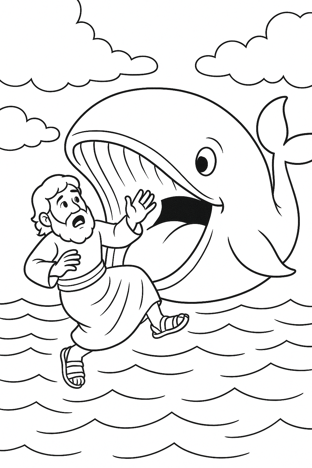 Para tornar o aprendizado ainda mais dinâmico, preparamos atividades de colorir relacionadas à história de Jonas. Cada ilustração acompanha uma parte do relato bíblico, permitindo que as crianças ouçam a história enquanto participam da atividade criativa de colorir os desenhos.